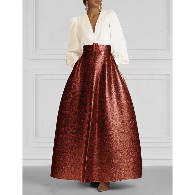Ball Gown A-Line Ankle Length Cocktail Dresses Party Dresses Elegant Vintage Long Sleeve Crew Neck Wedding Formal Detachable Satin Sequined with Pleats Pocket