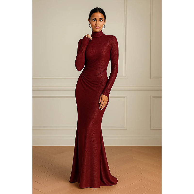 Mermaid Trumpet Sweep Brush Train Prom Dresses Evening Gown Ball Gown Formal Dress Elegant Silky Long Sleeve High Neck Wedding Formal Capes Jersey with Glitter Ruched