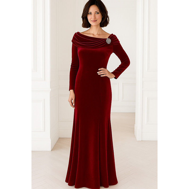 Sheath Column Floor Length Prom Dresses Evening Gown Ball Gown Formal Dress Elegant Long Sleeve Cowl Neck Wedding Formal Velvet with Rhinestone