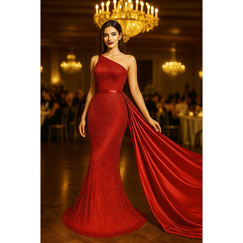Mermaid Trumpet Floor Length Evening Gown Ball Gown Elegant Glittering Silky Sleeveless One Shoulder Wedding Formal Detachable Satin Sequined with Glitter Embroidery