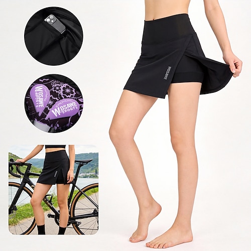 WOSAWE Per donna Tinta unica Pantaloncini da strada Pantaloni da ciclismo Gonna pantalone da ciclismo Bicicletta Pantaloncini Gonna Vestibilità aderente Gli sport Asciugatura Rapida Nero Abbigliamento