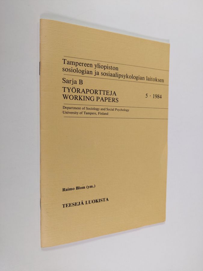 Raimo Blom : Työraportteja = Working papers 5/1984 ; Tampereen yliopiston sosiologian ja sosiaalipsykologian laitoksen