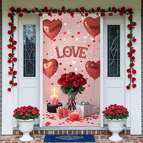 San Valentino Poster Copertura della porta Banner per esterni Amore Cuori Carino Romantico 3D Da serata Dormitorio Sfondi di ripresa Porta d'ingresso Decorazione per proposta di matrimonio