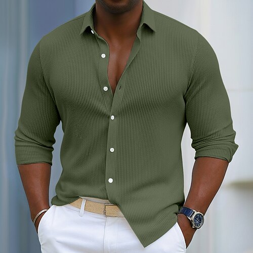 Herren Hemd Cordhemd Knopfhemd Blau Schwarz Weiß Marineblau Purpur Langarm Einfach Umlegekragen Lässig Täglich Button-Down Bekleidung Polyester Mode Streetwear Klassisch Lässig
