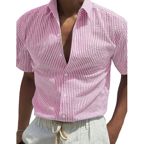 Per uomo Camicia button-down Camicia casual Camicia di Seersucker Nero Giallo Verde chiaro Rosa Viola Manica Corta A righe Bavero Casuale Quotidiano Bottoni Abbigliamento Streetwear Casual