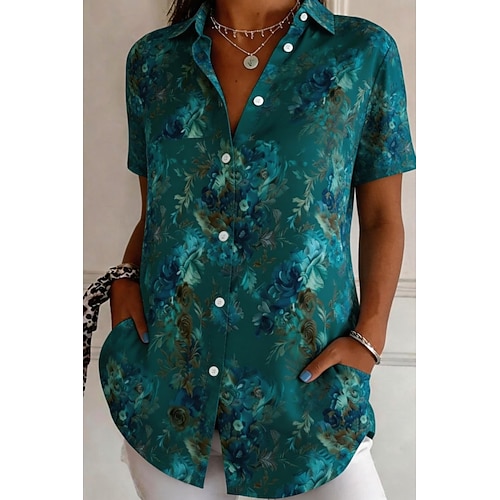 Per donna Camicia Camicia button-down Camicia casual Top estivi Bottoni Stampato Grafico Geometrico Vintage Elegante Moderno Manica Corta Colletto a Camicia Top lunghi Quotidiano Bianco - nero Bianco