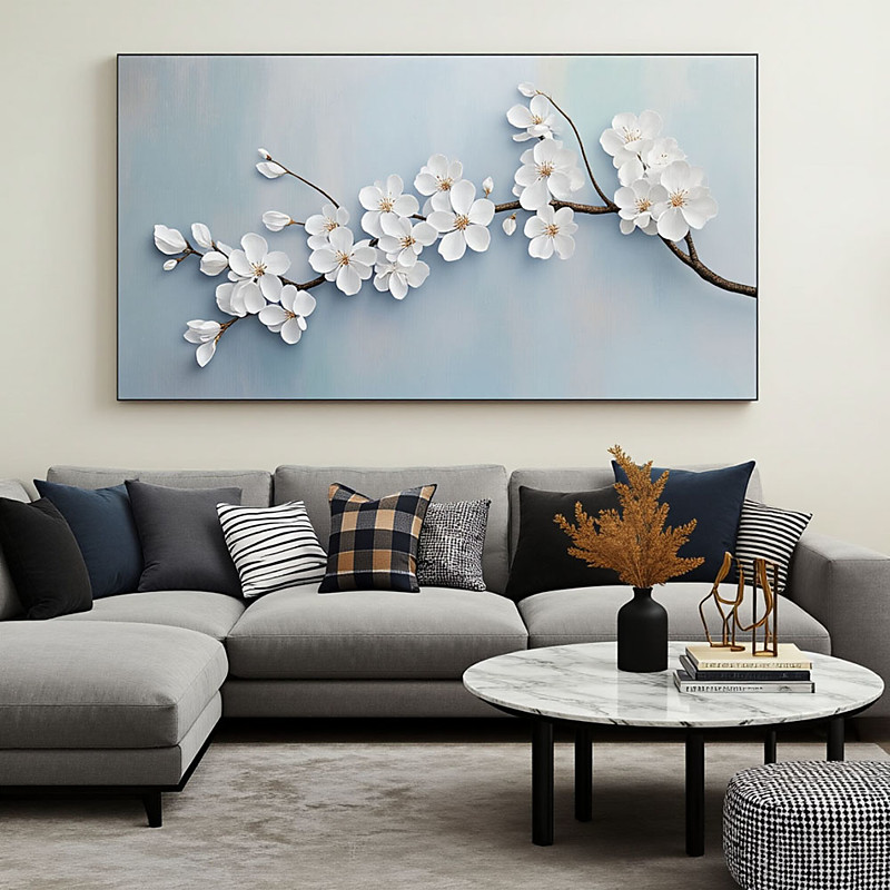 Magnolia Blossom Painting On Canvas 3D Flower Texture Wall Art Floral Art Blooming Branch Painting Large Living Room Art Texture Look Art