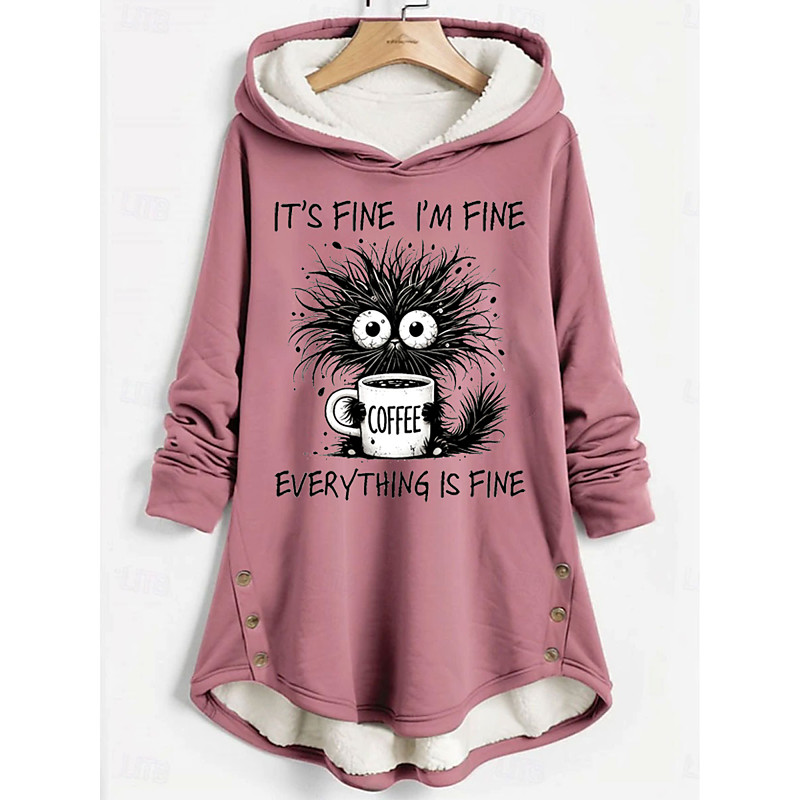 Women's Pullover Hoodie Sweatshirt Graphic Cat Letter Casual Comfrt Long Sleeve Hooded Long Tops Street Dailywear Casual Print Dark Pink Blue Gray Fall Winter
