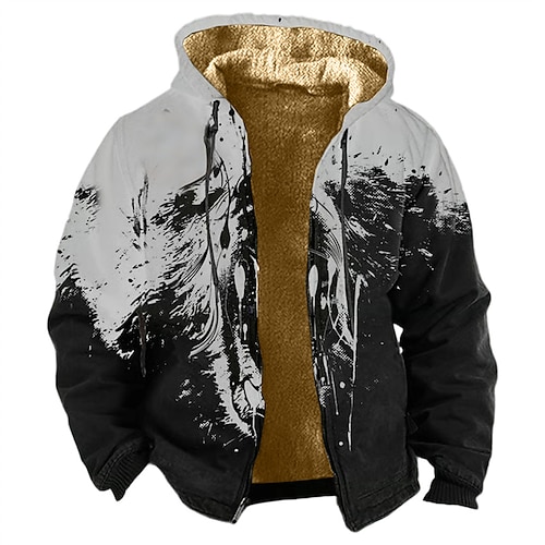 Per uomo Leone Croce Cappotto Invernale Giacca in Pile Cappotto Caldo Confortevole Traspirante Moda Streetwear Canotta sportiva Sport Outdoor Abbigliamento quotidiano Uscire Cerniera Tasca Stampato