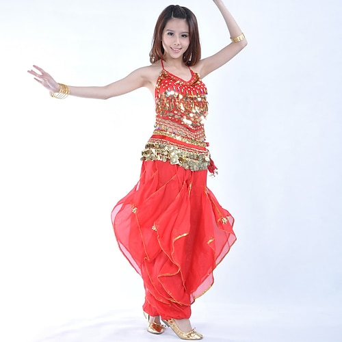 Bauchtanz oben Münzen Perlenstickerei Paillette Damen Leistung Ausbildung Ärmellos Normal Chiffon