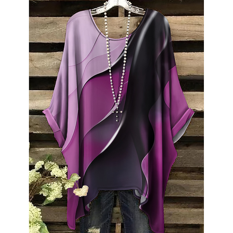 Schlupfbluse ANISTON PLUS, Damen, Gr. 46, rose, pink, orange, schwarz, lila, Web, Obermaterial: 100% Viskose, bedruckt, gemustert, weit Po-bedeckend, V-Ausschnitt, weit, Blusen Schlupfbluse, mit extravaganten farbenfrohes Blumen-Paileydessin - NEUE KOLLEK