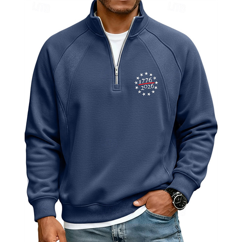 Men's Polo Polo Shirts Vacation Street Quarter Zip Long Sleeve Fashion Basic Star Patchwork Printing Fall Winter Tailored Fit Blue Apricot Black White Red Navy Blue Polo