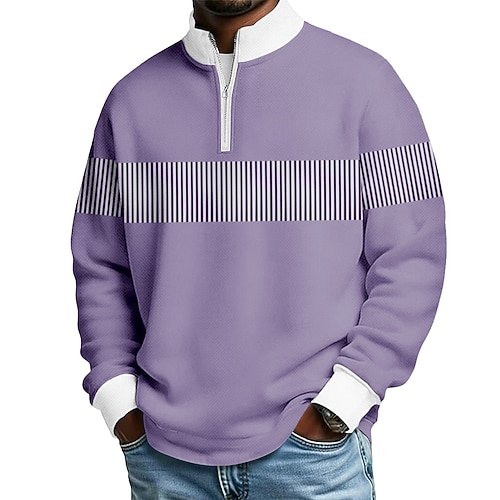 Men's Color Block Zip Polo Shirts Long Sleeve Polo Shirts Grandad Collar Casual School Athleisure Holiday Daily Wear 3D Print Quarter Zip Polo Spring Fall Blue Purple Brown
