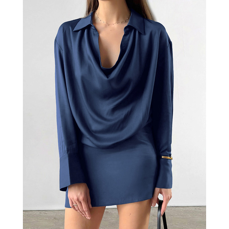 Women's Mini Dress Satin Dress Prom Dress Party Dress Cocktail Dress Elegant Fashion Modern Evening Party Party Birthday Slim Plain Long Sleeve Shirt Collar Blue Spring Fall