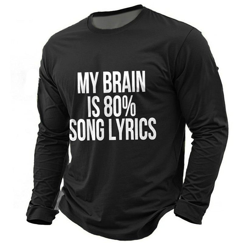 My Brain Is 80 Percent Song Lyrics Long Sleeve T Shirt Funny Music Lover Graphic Tee Men Musician Humor Olive Green Top Clothing Apparel S M L XL XXL XXXL