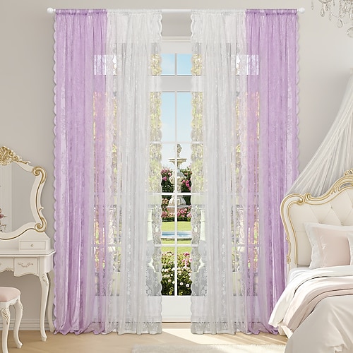 2 tende semitrasparenti ricamate di alta qualità in stile francese per soggiorno, camera da letto, sala da pranzo, studio
