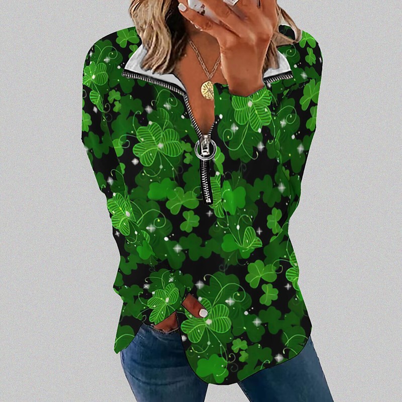 St. Paddy's Day St. Patrick's Day Women's T Shirt Leaf St. Patrick's Day Basic Long Sleeve V Neck Regular Tops Casual Holiday Print Quarter Zip Grass Green Black Yellow Light Green Army Green Fall