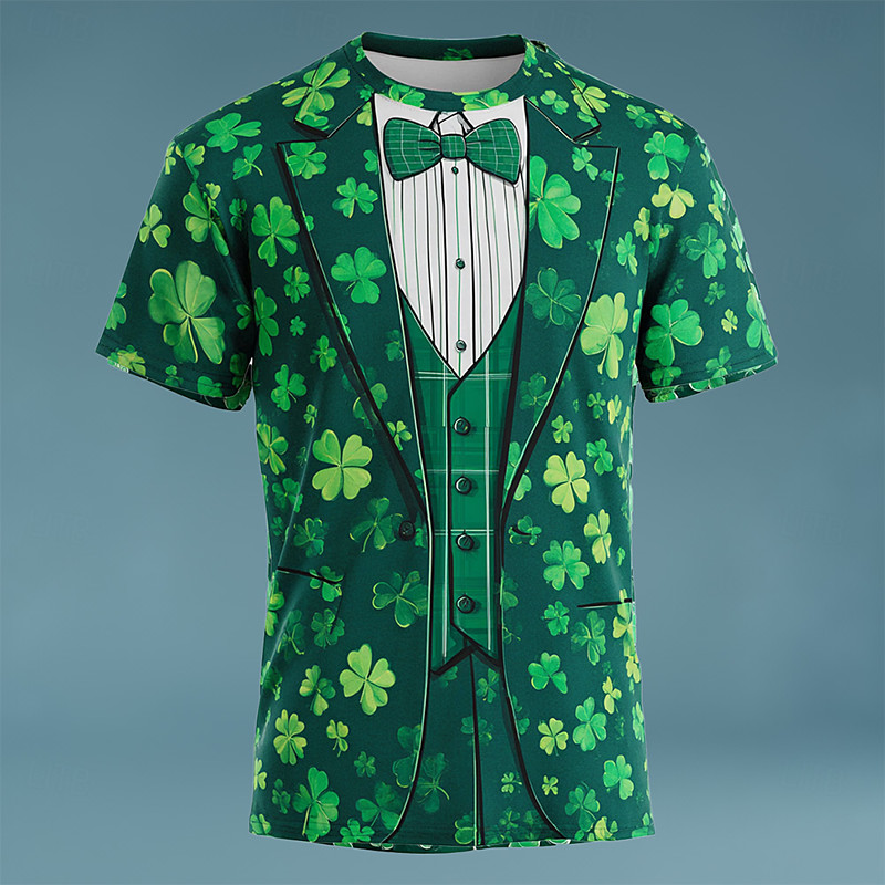 St. Patrick Men's Shamrock Lucky Irish Tuxedo T Shirt Short Sleeve T shirt 3D Print Crew Neck Shirt Designer Casual Club Party Holiday Green 1# Green 2# Green 3# Summer Spring Clothing Apparel S M L