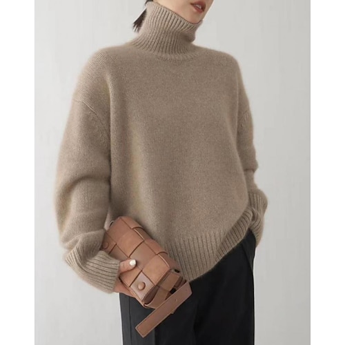 Per donna Felpa Maglione Streetwear Casual Tinta unica Dolcevita Lavorato a maglia Manica Lunga Top Regolari Maglia Quotidiano Ferie Weekend Blu marino Cammello Autunno Inverno