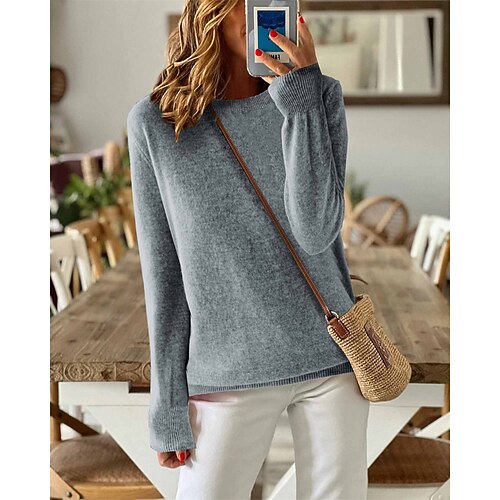 Per donna Felpa Maglione Elegante Moda Carino Tinta unica Girocollo Lavorato a maglia Manica Lunga Top Regolari Maglia All'aperto Casa Lavoro Nero Bianco Autunno Inverno