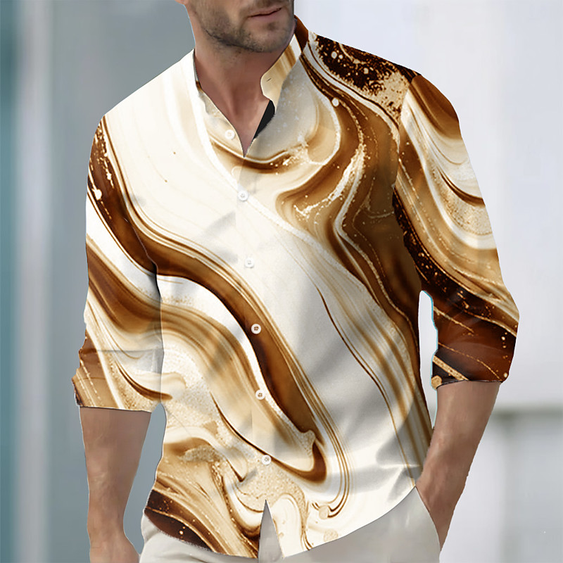 Men's Geometric Gradient Waves Shirt Stand Collar Shirt Long Sleeve Fashion Casual Dailywear Holiday Spring Fall Mandarin Collar Band Collar 3D Print Button Up Shirts Blue Red Purple Green