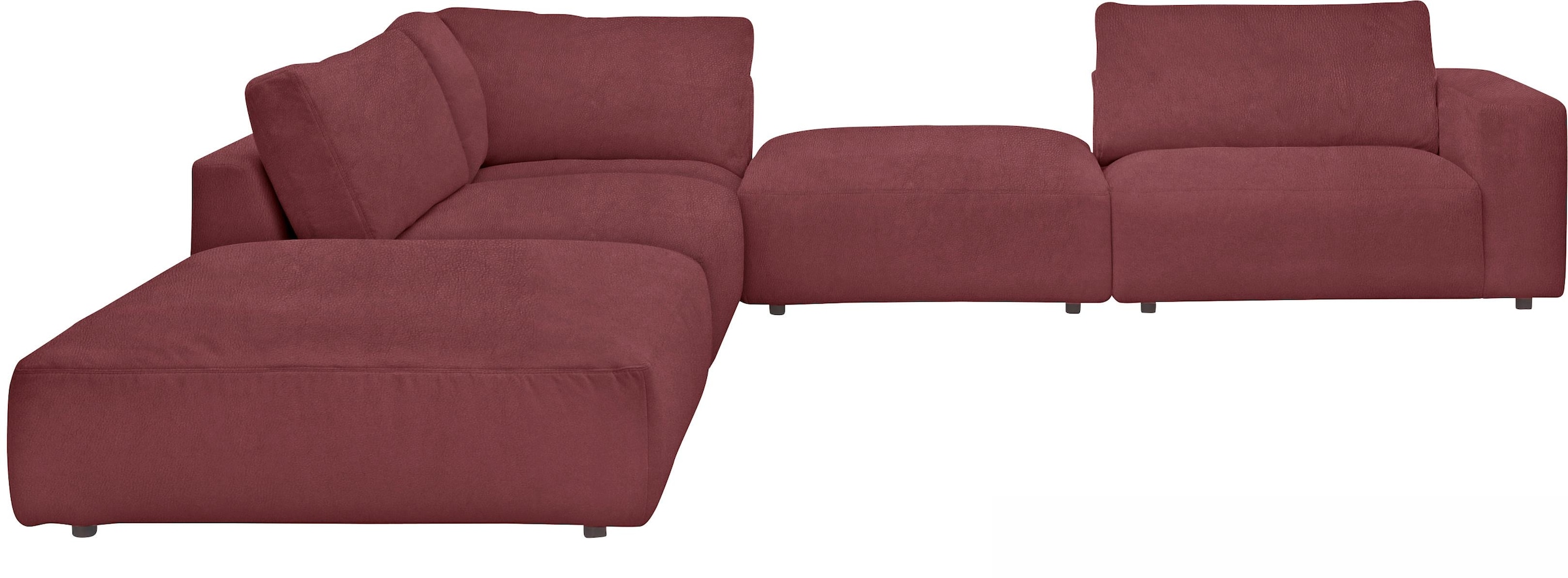 Ecksofa MUSTERRING "LUCIA L-Form", rot (cherry puro), B:340cm H:81cm T:346cm, Flachgewebe FLORIS (100% Polyester);Flachgewebe VALMONT (60% Baumwolle/ 40% Leinen);Microfaser CRONA (100% Polyester), Sofas, in vielen Qualitäten und 4 verschieden Nähten