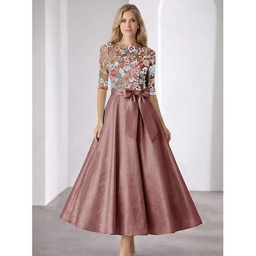 Linea ad A Lunghezza alla caviglia Lunghezza Tè Vestito da Festa Abito da Cocktail Abito da invitata a nozze Abiti da Cocktail Elegante Scintillante Manica 3/4 Scollo a Barca Festa in giardino Formale