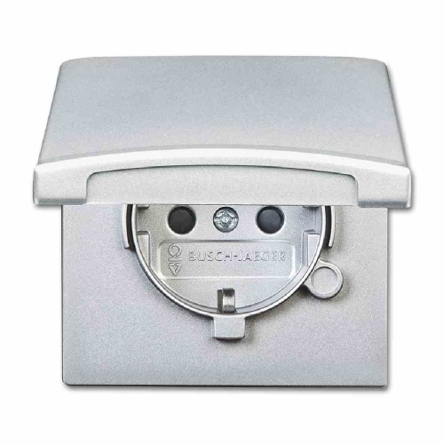 Busch-Jaeger Allwetter 44 Steckdose, 1f, aluminium-silber, matt, Unterputz, horizontal/vertikal, mit Klappdeckel, IP44, Zentralplatte