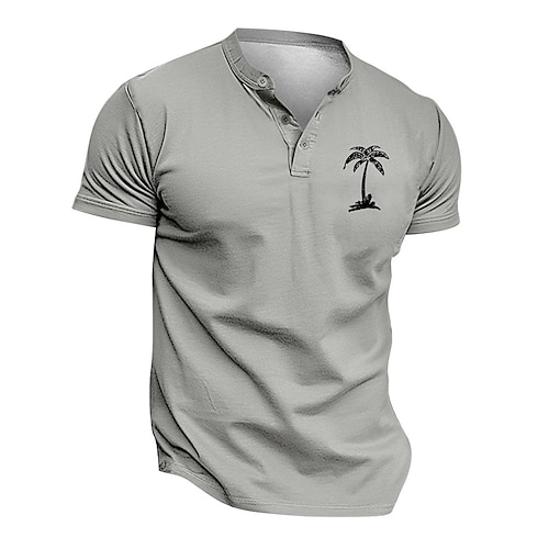 Per uomo Maglietta Maglia Henley Camicia a Maniche Corte Manica Corta Henley Estate Primavera Palma Moda Streetwear Casual Bottoni Stampato Quotidiano Vacanza Sport Outdoor Nero Verde chiaro Bianco