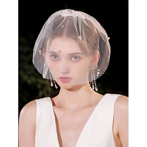velo da sposa corto con decorazioni in perle e cristalli – elegante accessorio da sposa vintage per le spose, ideale per matrimoni e cerimonie