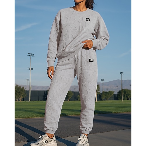 Per donna Tuta da 2 pezzi Set di tute da ginnastica Abbigliamento sportivo Baggy Tinta unita Completo Abbigliamento Autunno Nero Bianco Lavoro All'aperto Viaggio Leggero Di tendenza Manica Lunga Sport