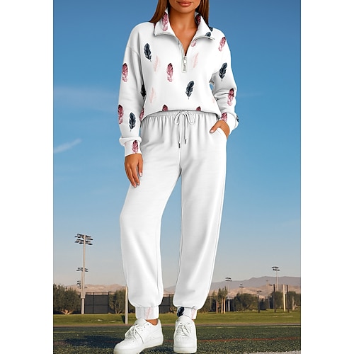 Per donna Maglia Tuta da Ginnastica Tuta da 2 pezzi Coulisse Con zip Floreale Completo Abbigliamento Autunno Bianco Lavoro All'aperto Viaggio Leggero Di tendenza Manica Lunga Sport Abbigliamento