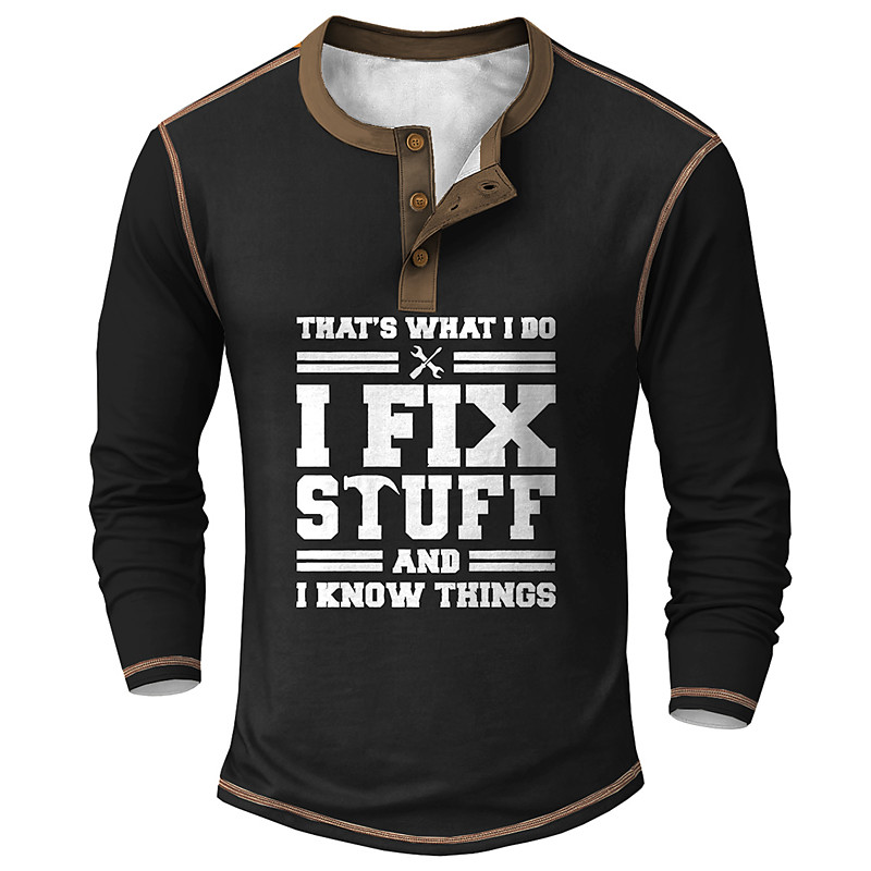 Mens Henley Long Sleeve Graphic Tee I Fix Stuff I Know Things Hobbies Lifestyle