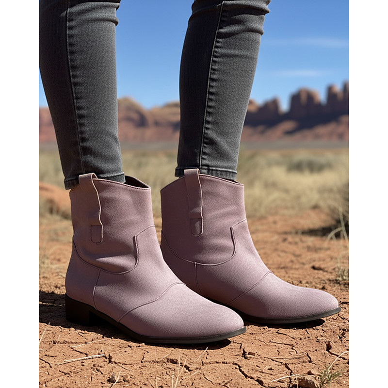 Women's Brown Faux Suede Western Ankle Boots – Vintage-Style Low Heel Cowboy Boots for Casual Outfits