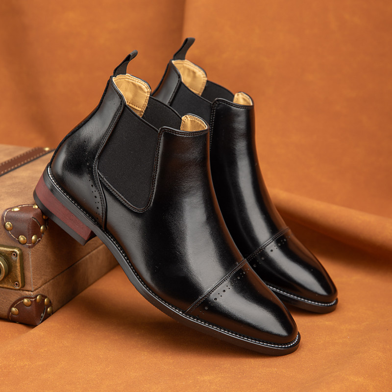 Men's Polished Brown Chelsea Boots with Pointed Toe Elegant Ankle Dress Boots for Business Meetings, Weddings and Evening Outings