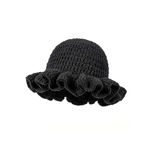 Cappello da donna con volant all'uncinetto – berretto da festival lavorato a maglia arcobaleno multicolore per carnevale, feste in maschera e stile boho chic