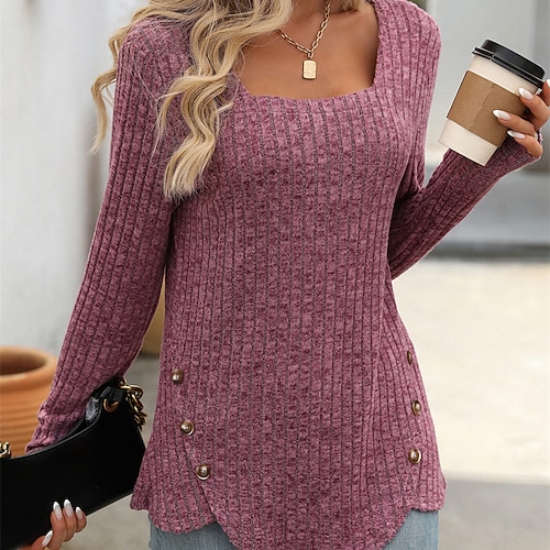 Per donna Maglietta Semplice Elegante Moda Essenziale Manica Lunga Collo quadrato Top Regolari Quotidiano Weekend Patchwork Nero Blu Viola Verde Bianco sporco Primavera Autunno Inverno