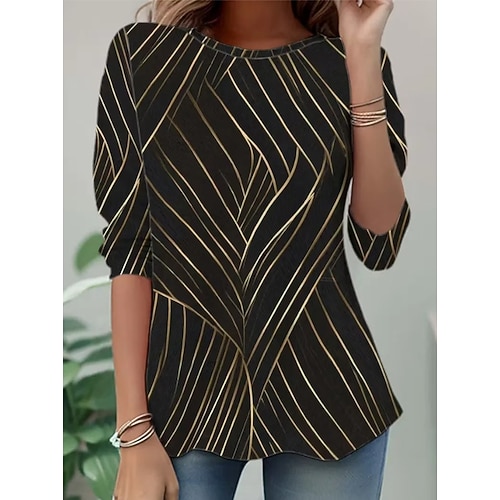 Per donna Tunica Grafico Semplice Elegante Vintage Moda Manica Lunga Girocollo Top lunghi Quotidiano Weekend Stampato Nero Bianco Vino Estate Primavera Autunno Inverno