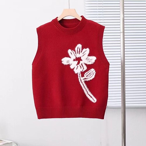Per donna Felpa Gilet Streetwear Casual Floreale Girocollo Ricamato Lavorato a maglia Senza Maniche Top Regolari Maglia Quotidiano Ferie Weekend Nero Rosso Autunno Inverno