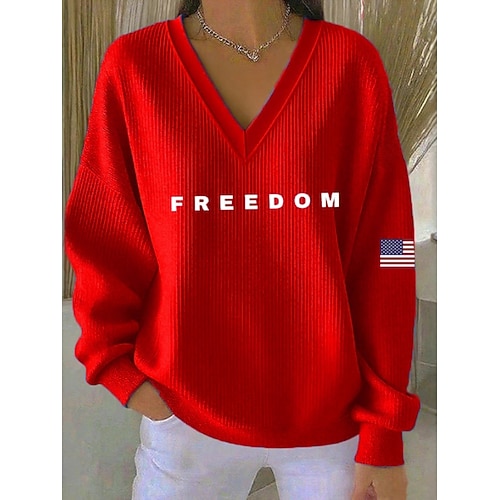 Per donna Blusa Lettera Elegante Casual Manica Lunga Scollo a V Top Regolari Quotidiano Stampato Blu Nero Rosso Beige Grigio Primavera Autunno Inverno
