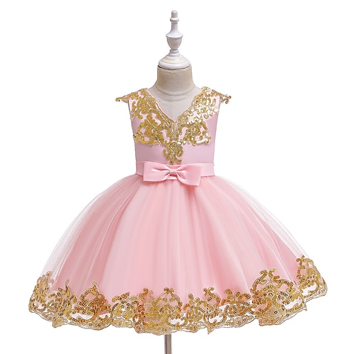 Abito da damigella d'onore bambina Ragazze Abito formale Abiti da sposa Feste Matrimonio Formale Moda Lolita Principessa Paillettes Patchwork Floreale Senza Maniche A V Blu Nero Dai 4 anni in su