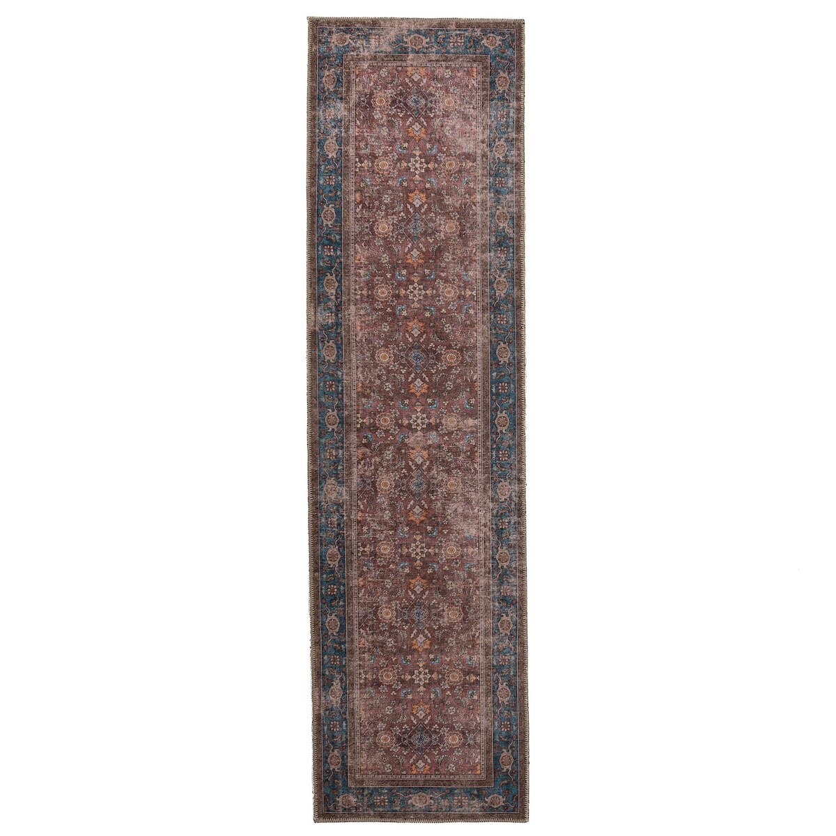 KADIMA DESIGN Flachgewebe Teppich waschbar Rot Vintage Orientalischer Used-Look | 60x230cm
