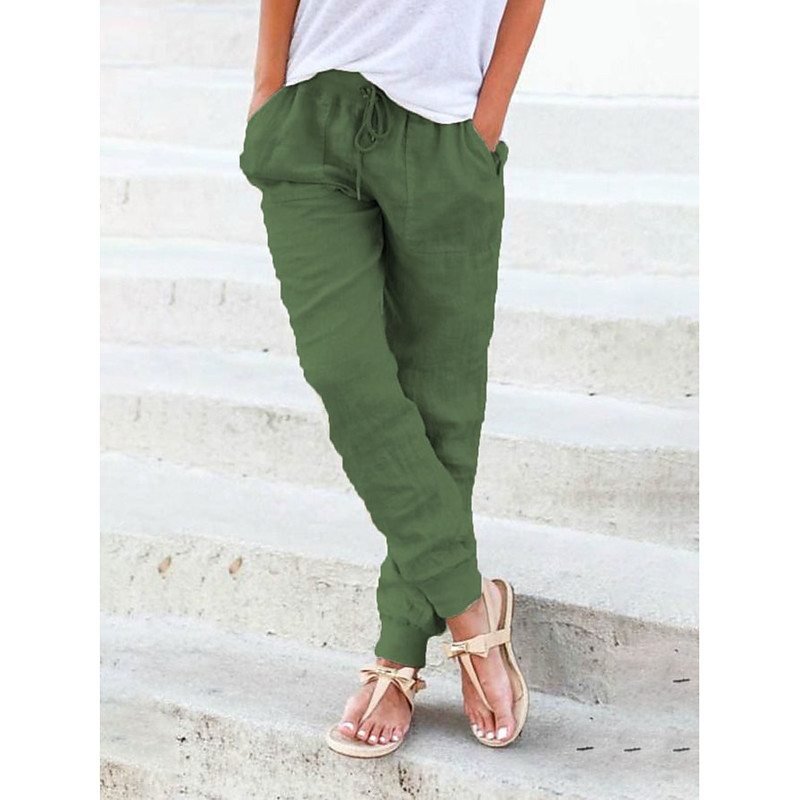 Women's Joggers Normal Faux Linen Plain Yellow Army Green Fashion Mid Waist Full Length Casual Weekend Autumn / Fall