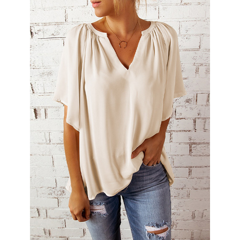 Women's Linen Shirt Blouse Plain Casual Short Sleeve Crew Neck Regular Tops Daily Holiday Going out Black Yellow Pink Apricot Summer