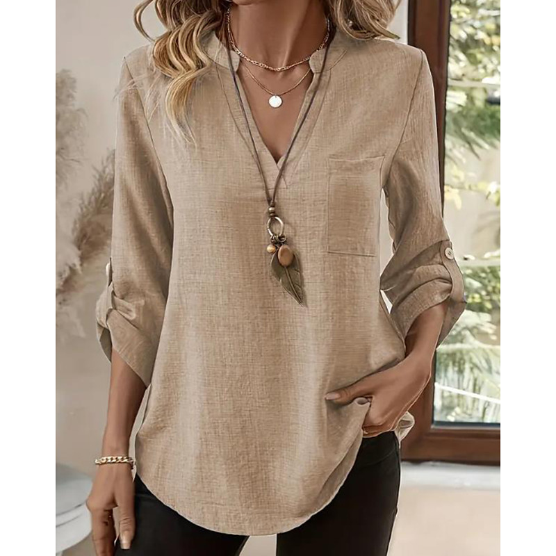 Women's Blouse Plain Casual Long Sleeve V Neck Regular Tops Daily Holiday Pocket Buttons Blue Yellow Purple Green Khaki Summer Spring