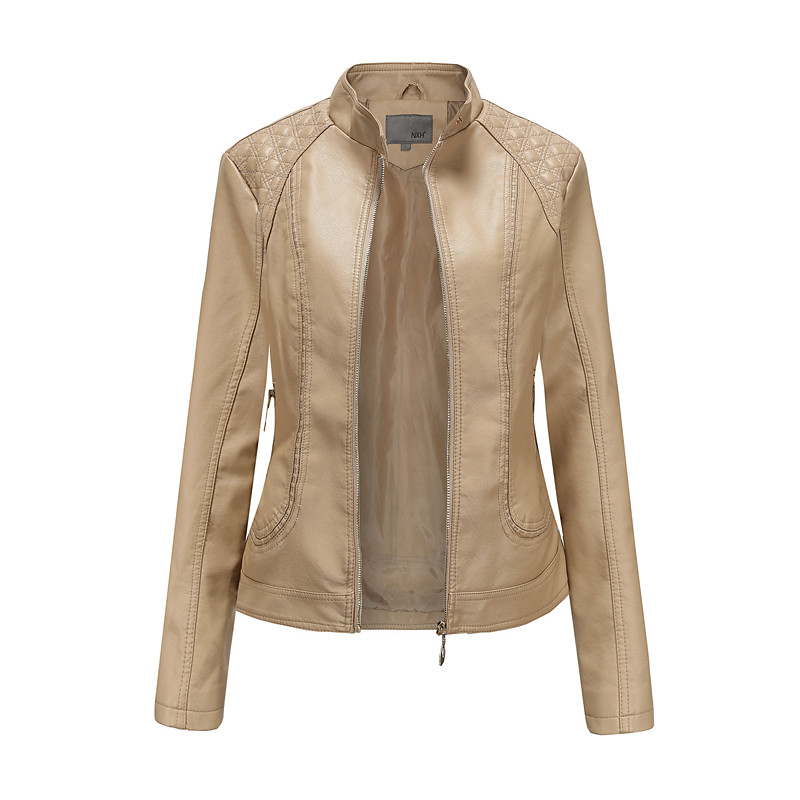Women's Faux Leather Jacket Biker Jacket Comfortable Pocket Full Zip Fashion Street Style Plain Outdoor Casual Daily Regular Stand Collar Regular Fit Long Sleeve Outerwear Black Champagne Red Spring