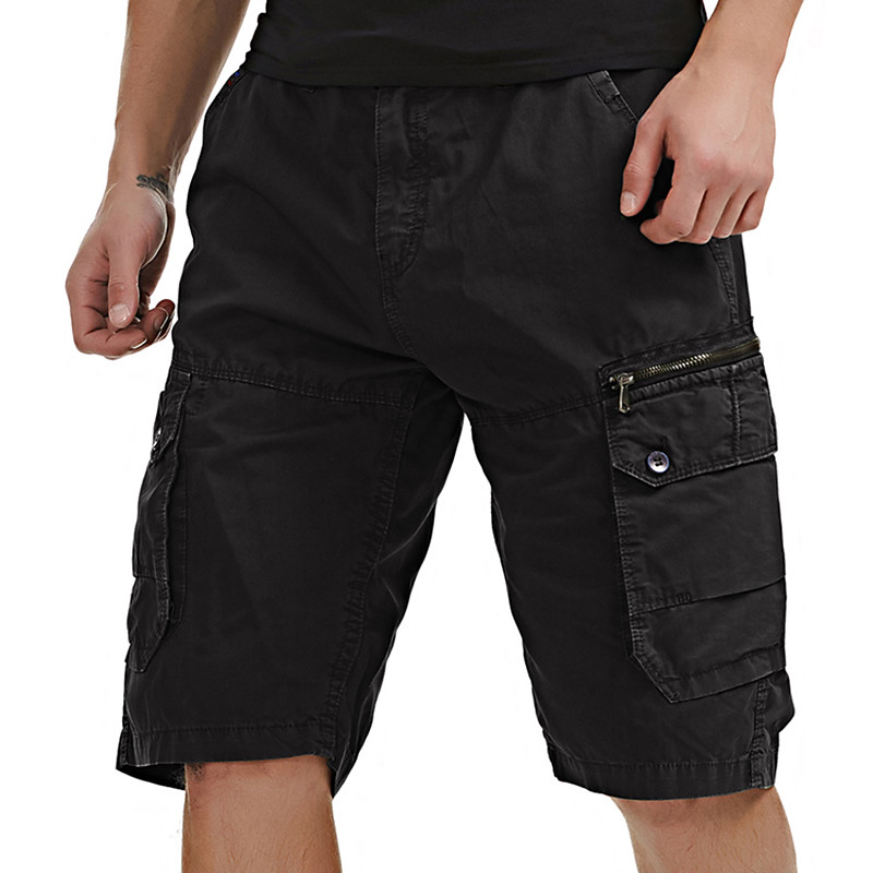 Men's Cargo Shorts Shorts Summer Shorts Multi Pocket Button-Down Flap Pocket Plain Comfort Wearable Knee Length Outdoor Sport Daily Fashion Casual Black Blue