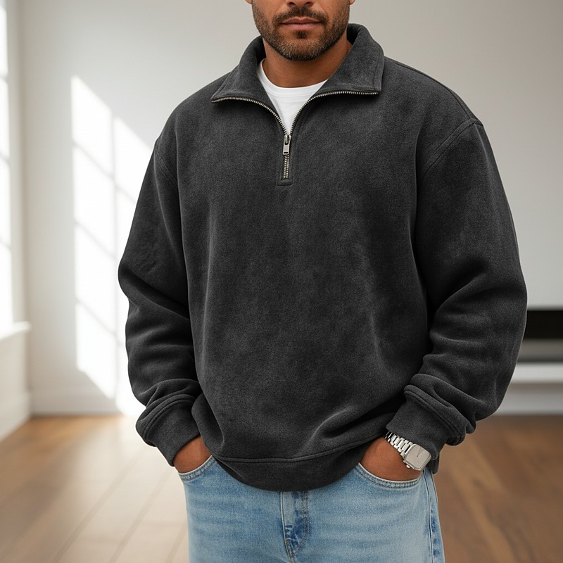 Men's Faux Suede Zip Polo Pullover Sweatshirt Vacation Street Zip Up Long Sleeve Fashion Basic Solid Color Plain Fashion Fall Spring Fall All Seasons Relaxed Fit Black Pink Army Green Navy Blue
