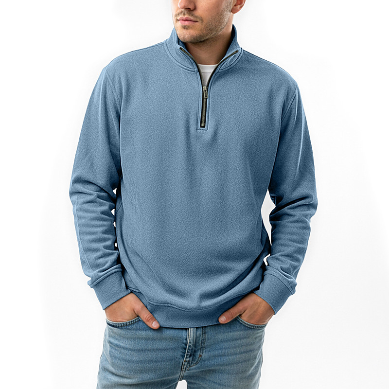 Men's Pullover Sweatshirt Zip Polo Casual Vacation Zip Long Sleeve Fashion Basic Solid Color Plain Fashion Fall Spring Fall Fall Winter Regular Fit Black Pink Navy Blue Dark Green Brown Khaki