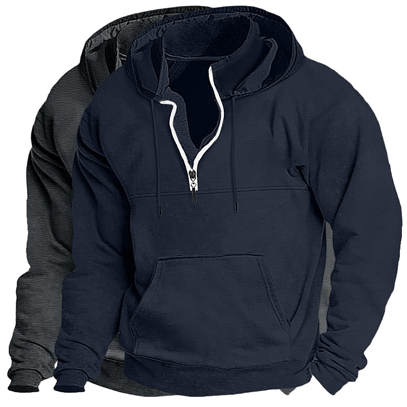 Men's Hoodie Quarter Zip Hoodie Tactical Hoodie BlackLight Gray KhakiBlack Light GrayBlue Navy BlueBlack Dark GrayLight Gray Hooded Plain Zipper Sports Outdoor Casual Daily Streetwear Cool